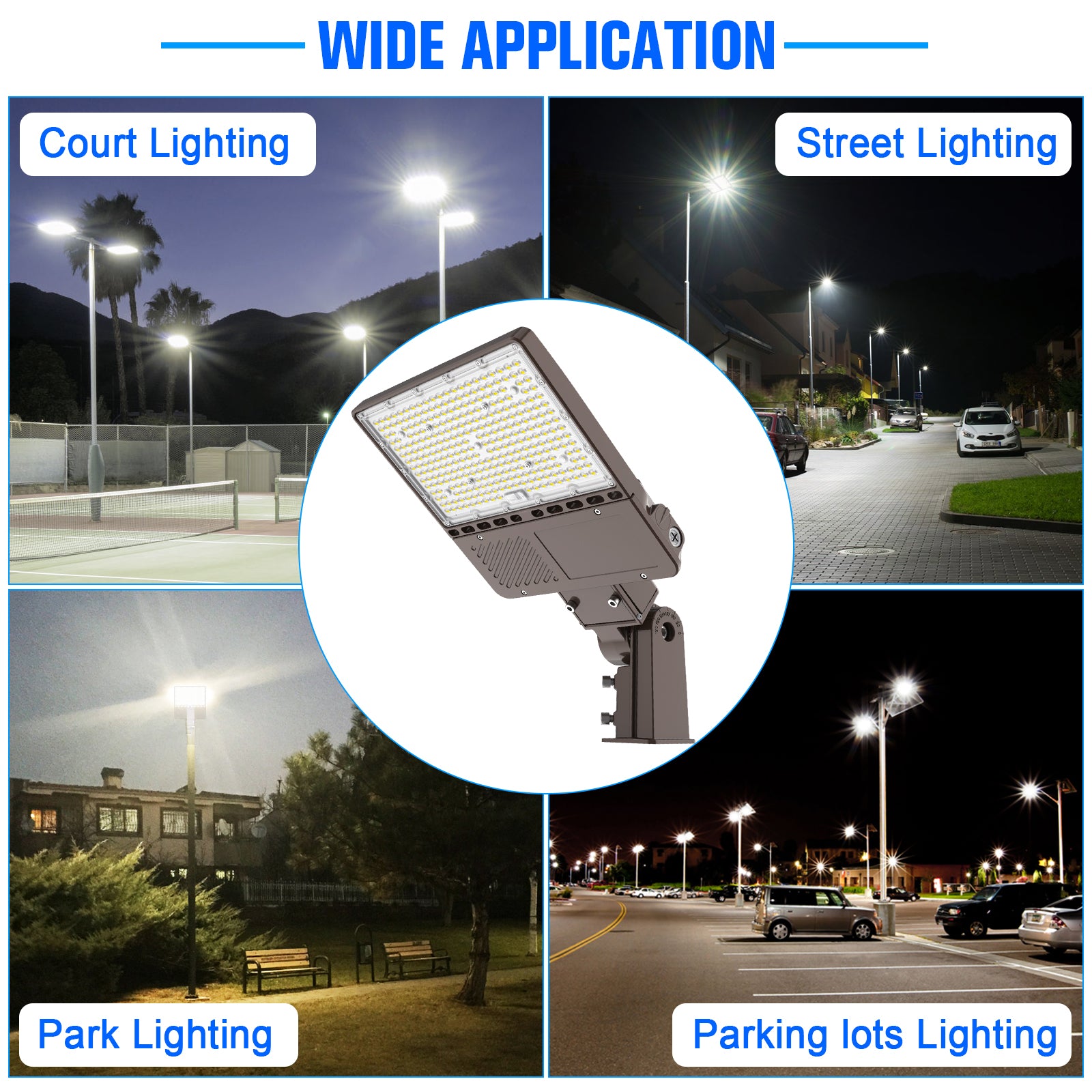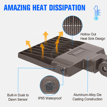 I installed these Parking Lot lights in our company parking lot. The illumination is fantastic, covering a large area evenly. They are bright enough to ensure the safety of employees and visitors at night. Plus, the build quality seems very sturdy, able to withstand various weather conditions. Highly recommended!