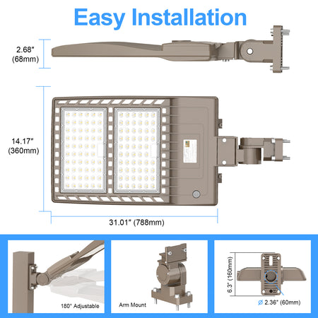 KUKUPPO 240W/200W/150W LED Shoebox Light - UL&DLC,36000Lm,5000K,277-480V,With Photocell,All In One