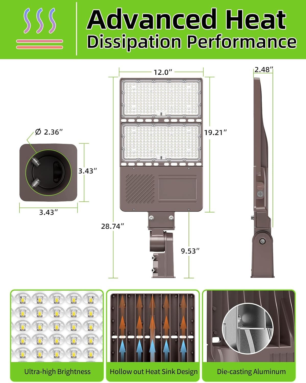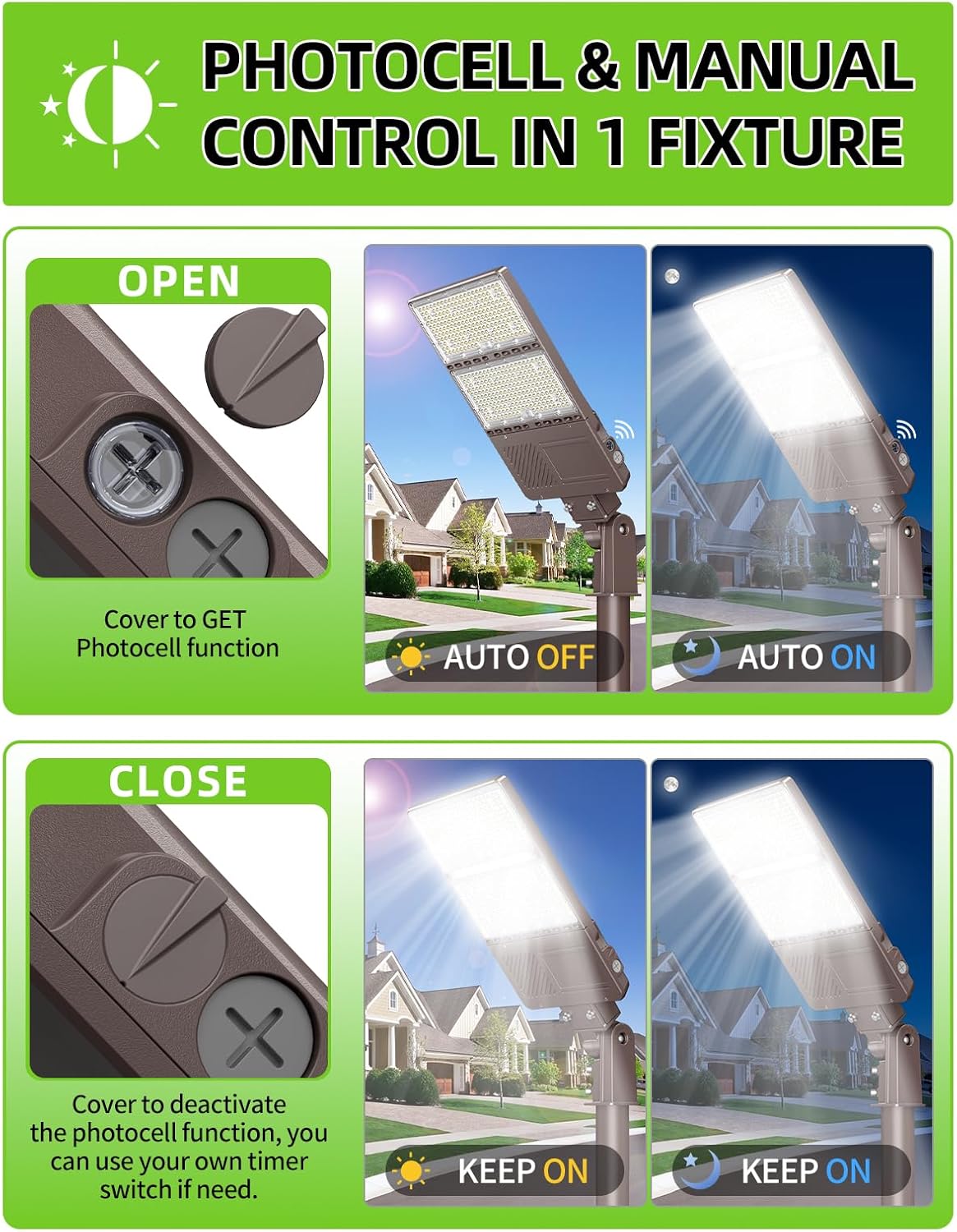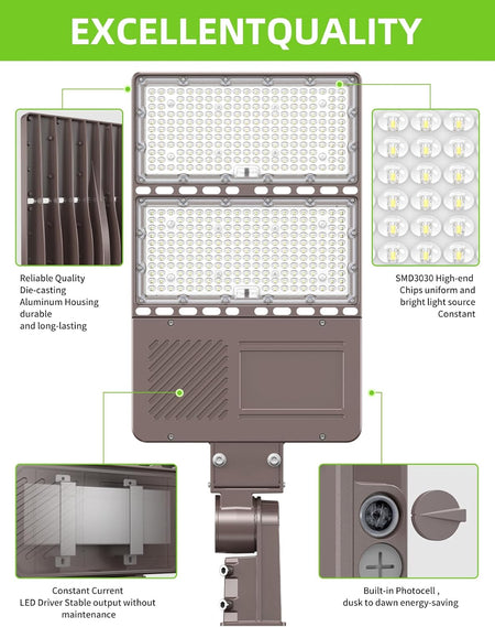 KUKUPPO 320W/256W/192W LED Parking Lot Light - UL&DLC&ETL,48000LM,5000K,277-480V,IP65,With Photocell,No Bracket