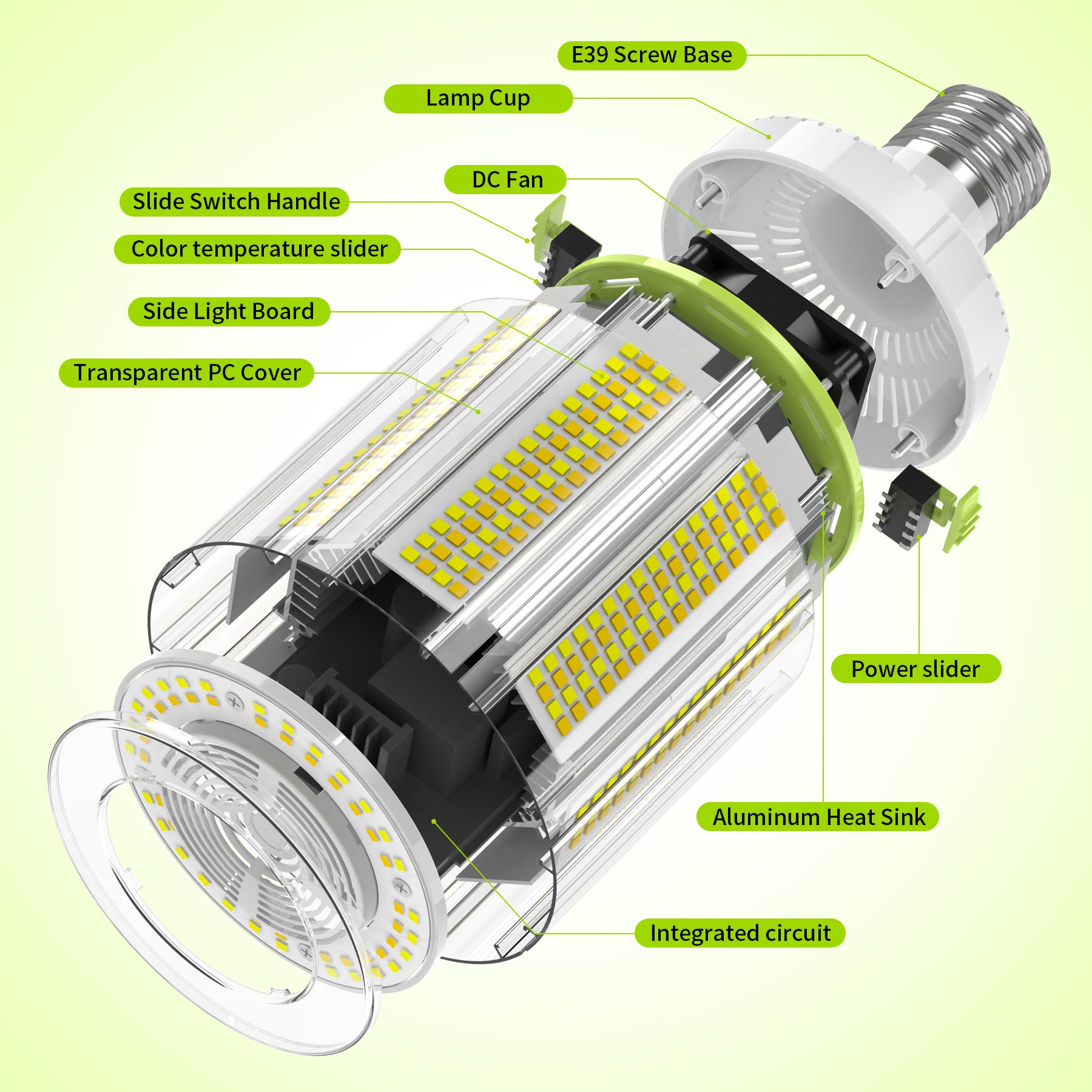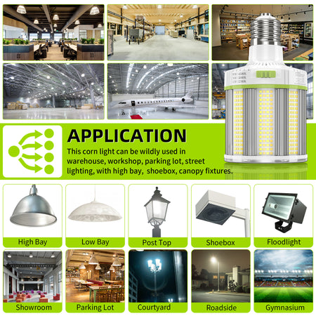 KUKUPPO 100W/80W/60W LED Fan Corn Light - ETL&DLC&CE,15000LM,4500/5000/5700K,E39,100-277VAC,PC Cover