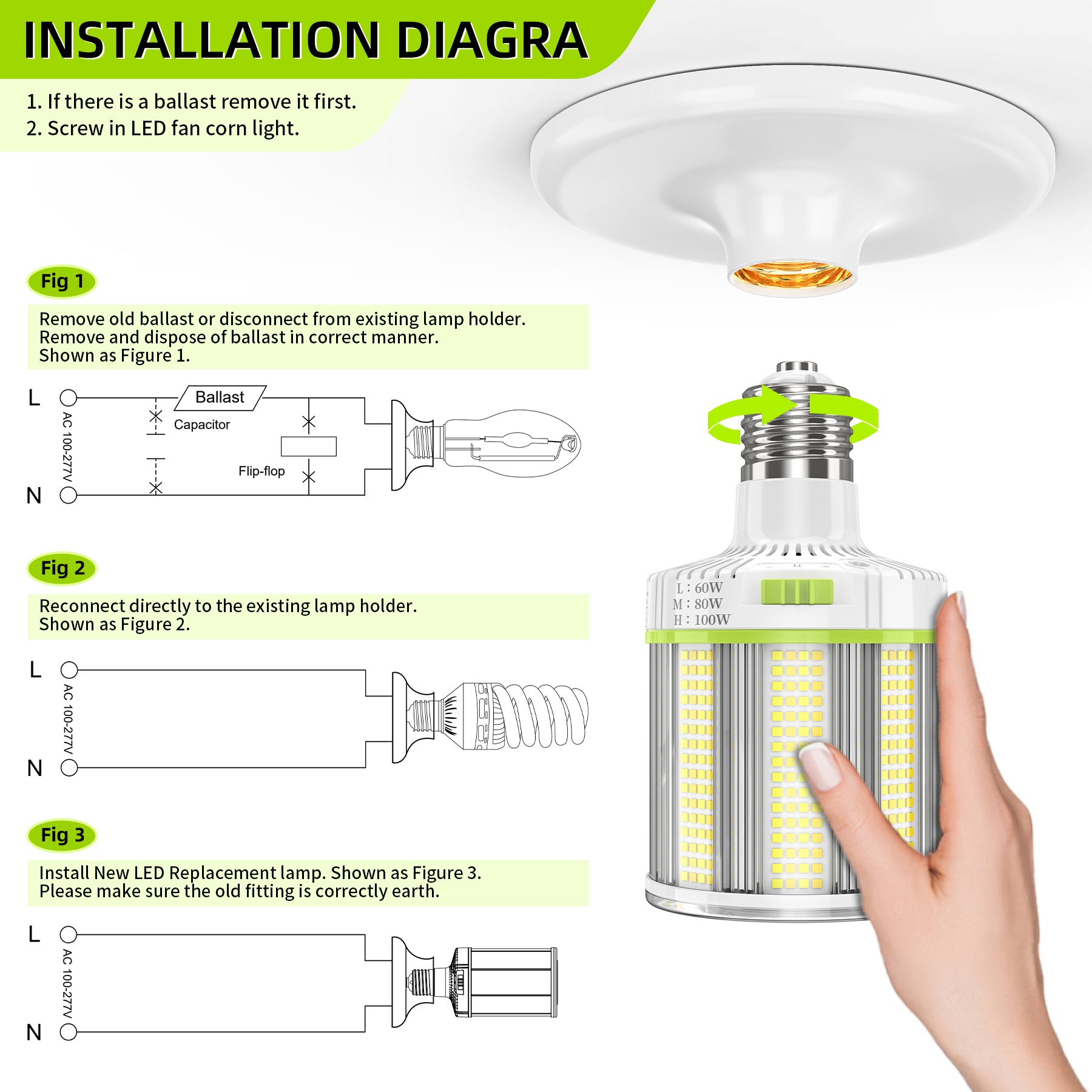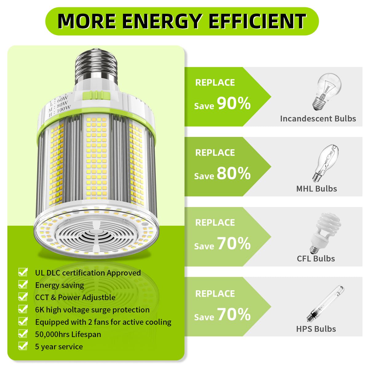 •Wattage: 100W/80W/60W