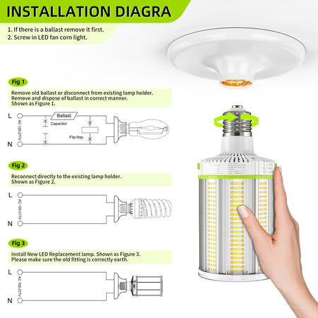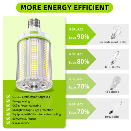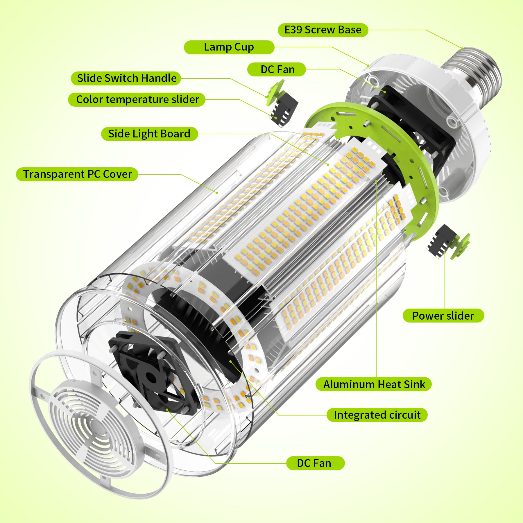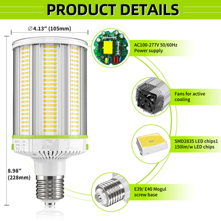 KUKUPPO 120W/96W/72W LED Fan Corn Light - ETL&DLC&CE,18000LM,4500/5000/5700K,E39,100-277VAC,PC Cover