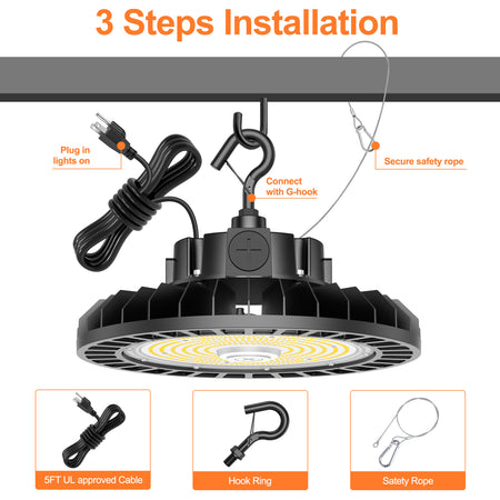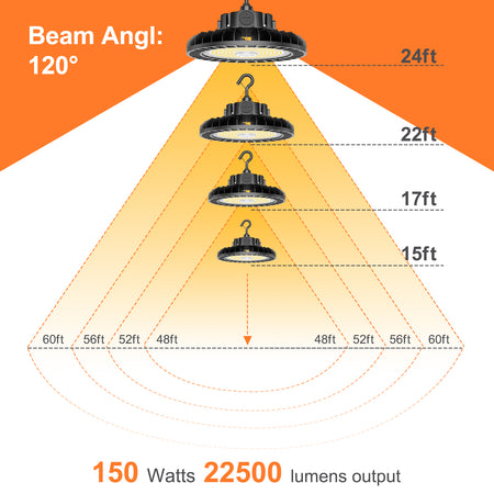 KUKUPPO 150W/120W/90W LED High Bay Light - ETL&DLC,22500LM,,4500/5000/5700K,100-277VACWith Microwave Expansion Port,120°,US Plug