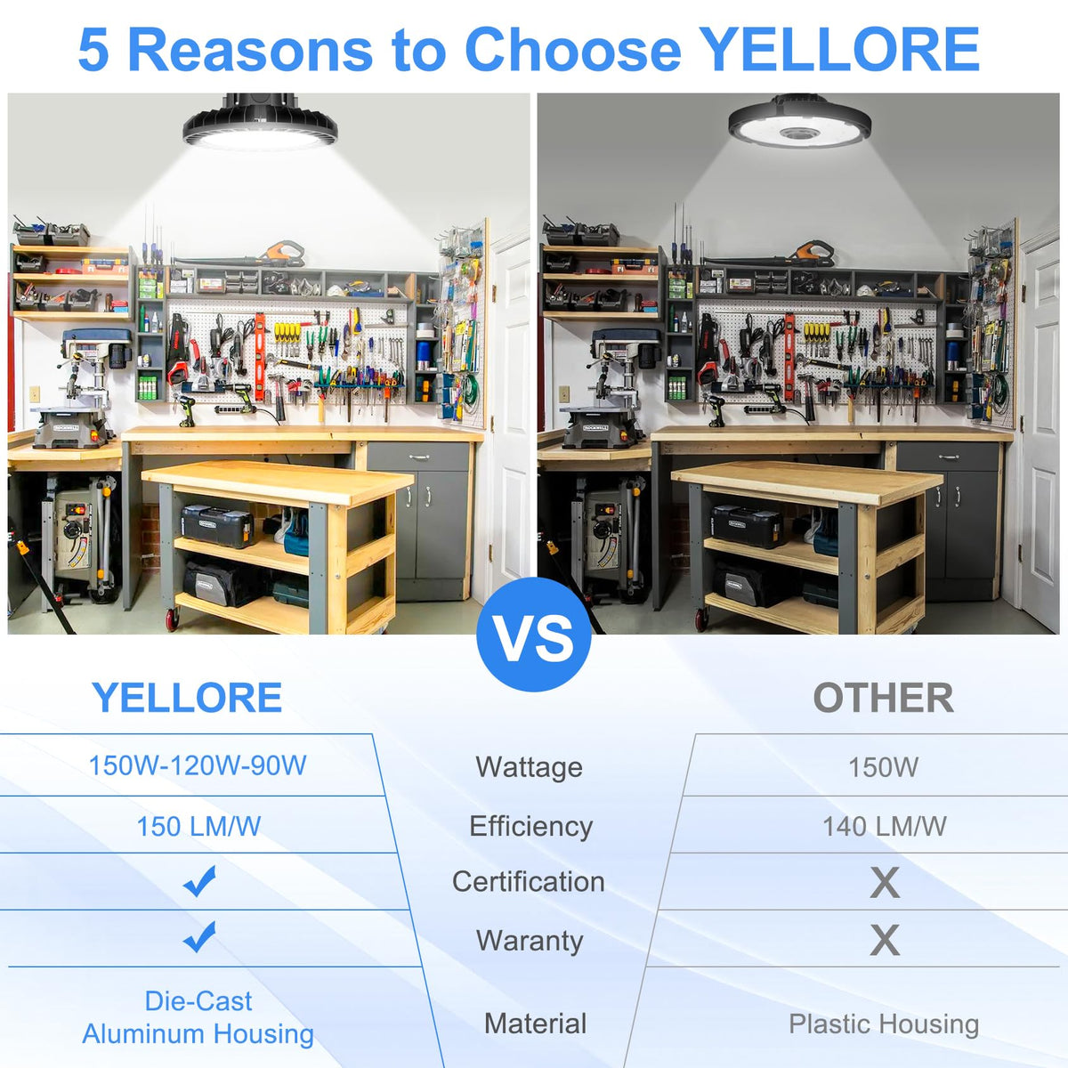 KUKUPPO 150W/120W/90W LED High Bay Light - ETL&DLC,22500LM,5000K,277-480V,With Microwave Expansion Port,120°
