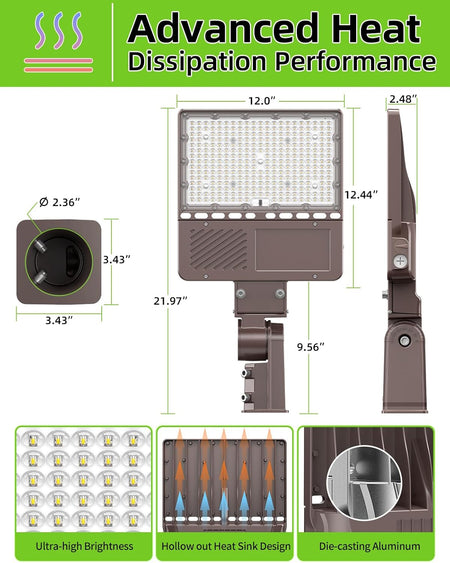 KUKUPPO 150W/120W/90W LED Parking Lot Light - ETL&DLC&UL,22500LM,5000K,100-277VAC,With Built-In Photocell ,Slip Fitter