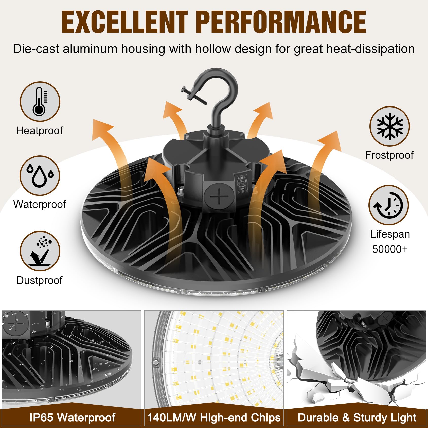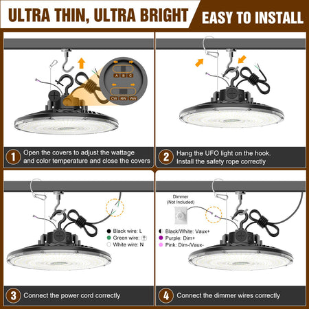 KUKUPPO 150W LED High Bay Light - UL&ETL&DLC,22500LM,5000K,100-277VAC,Dimmable