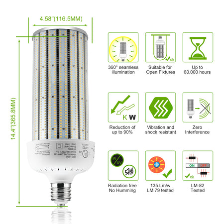 KUKUPPO 200W New LED Corn Light - ETL&UL&CE,28000LM,5000K,100-277VAC,E39,PC Cover