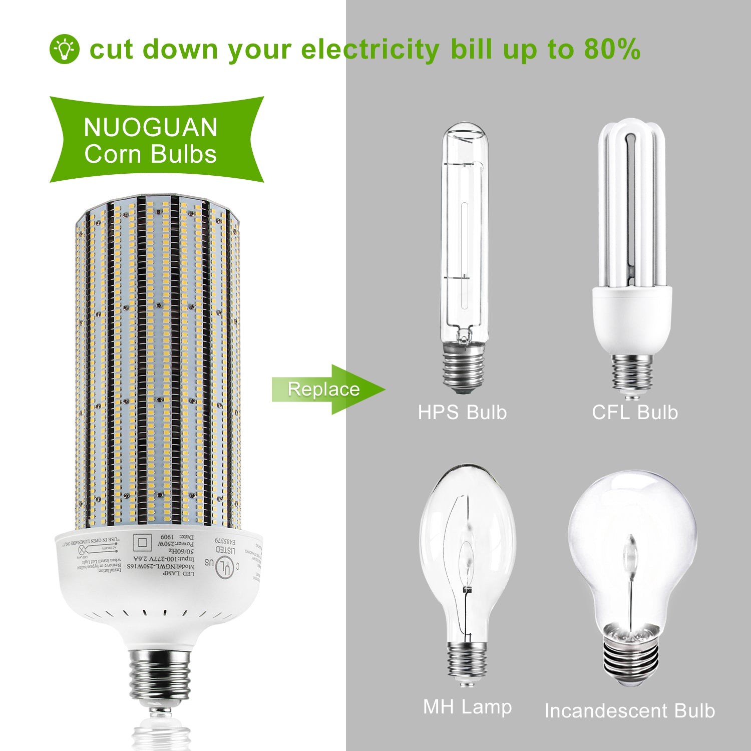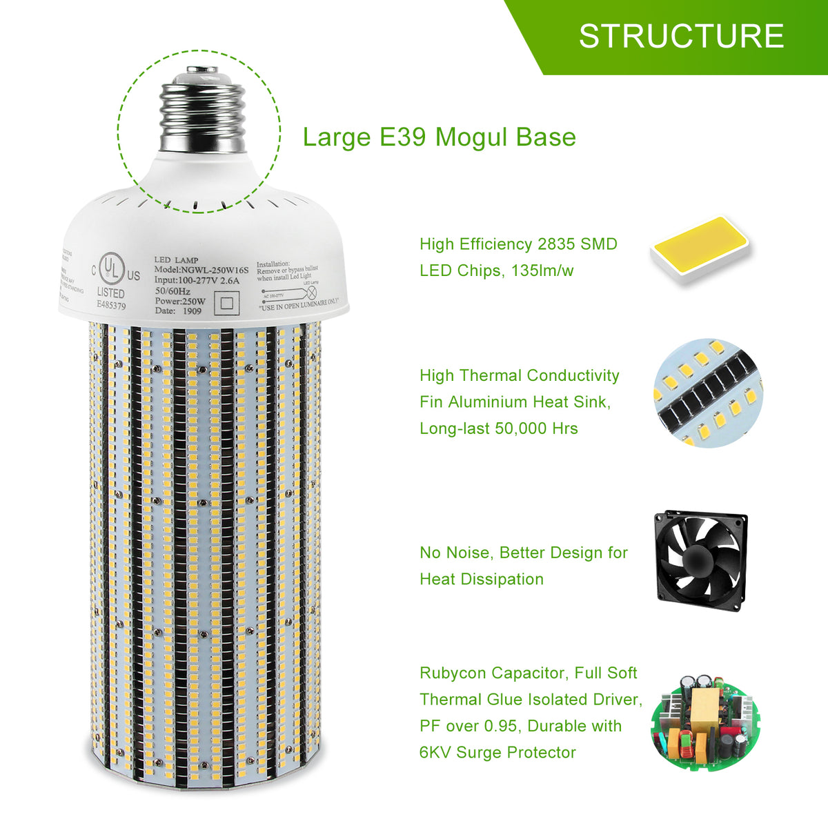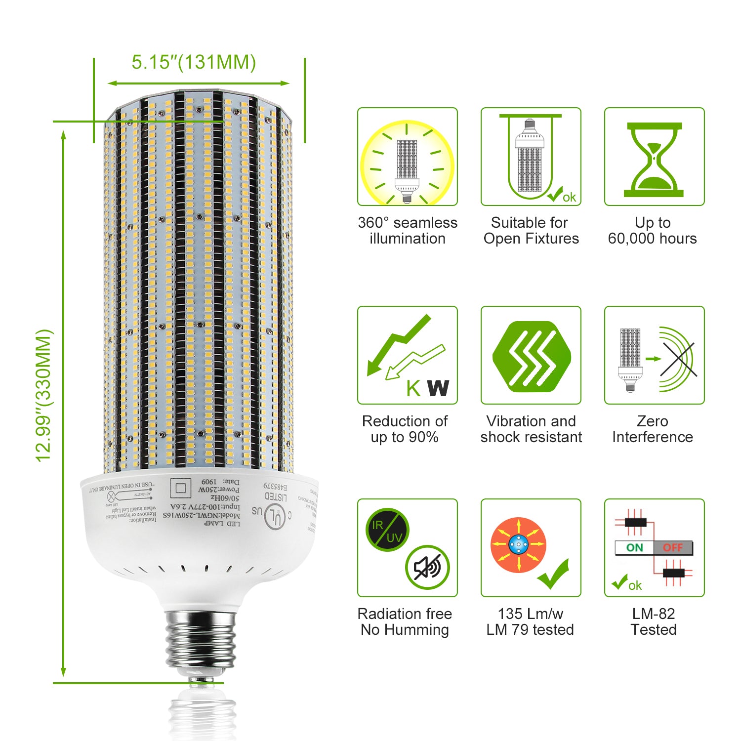 KUKUPPO 250W New LED Corn Light - ETL&UL&CE,35000LM,5000K,100-277VAC,E39,PC Cover