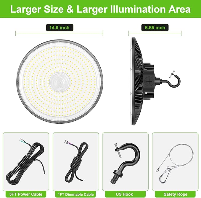 KUKUPPO 300W/240W/180W LED High Bay Light - UL&ETL&DLC,45000LM,5000K,277-480VAC,Dimmable