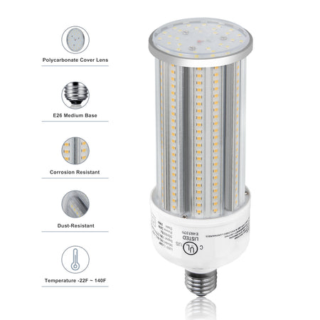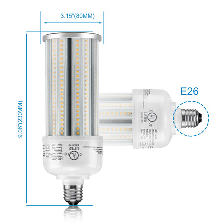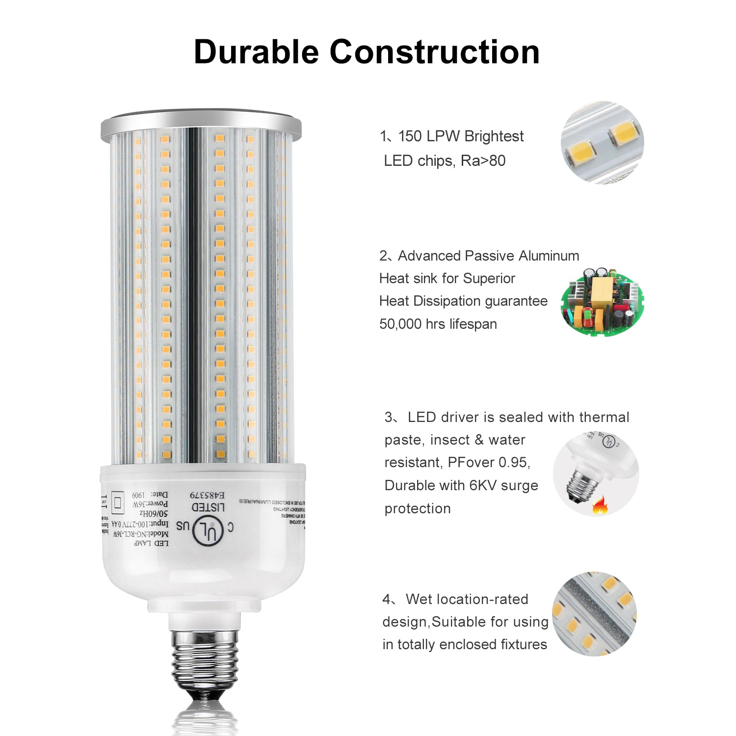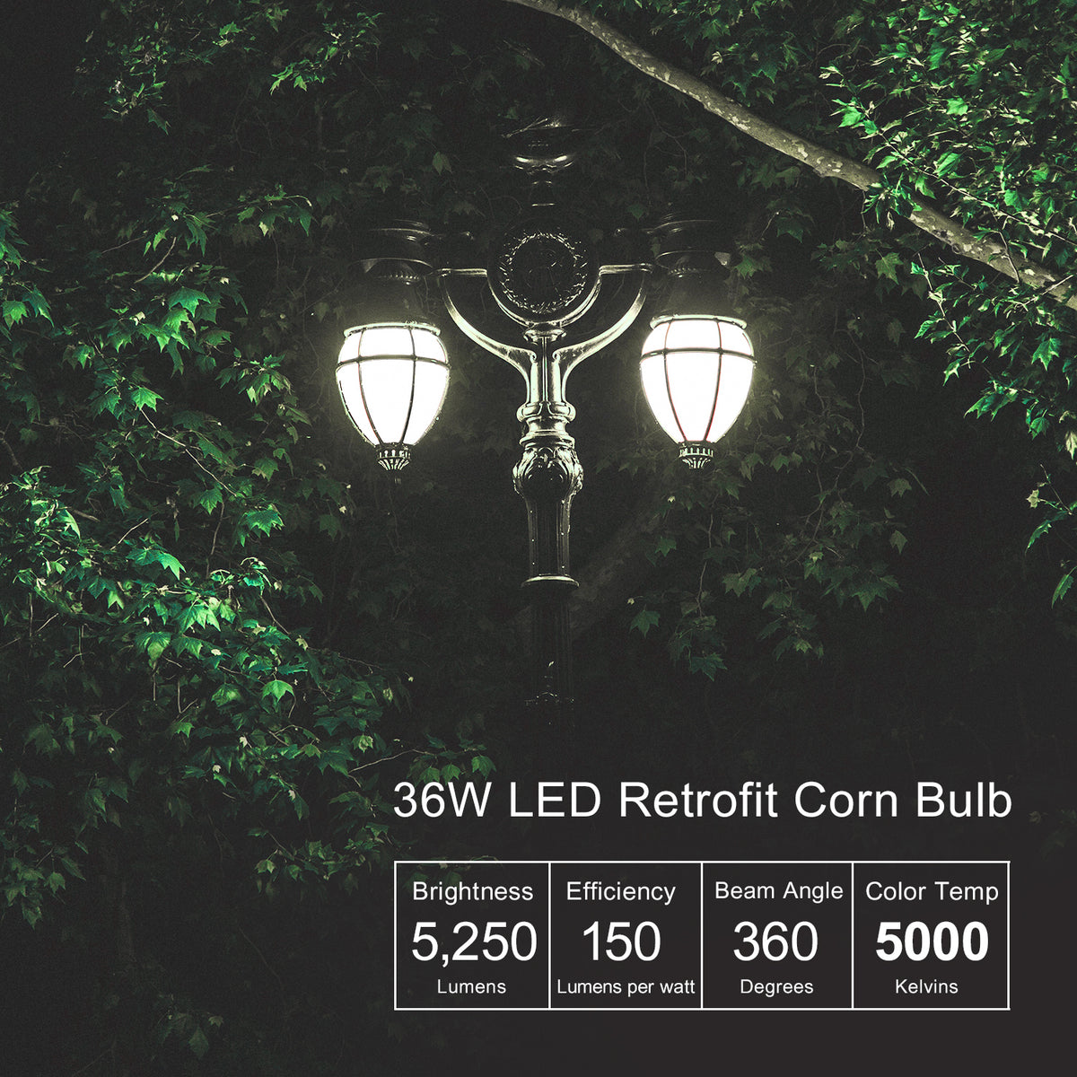 KUKUPPO 36W LED Retrofit Corn Bulbs Light - UL&CE,5250LM,5000K,100-277VAC,E26/E39