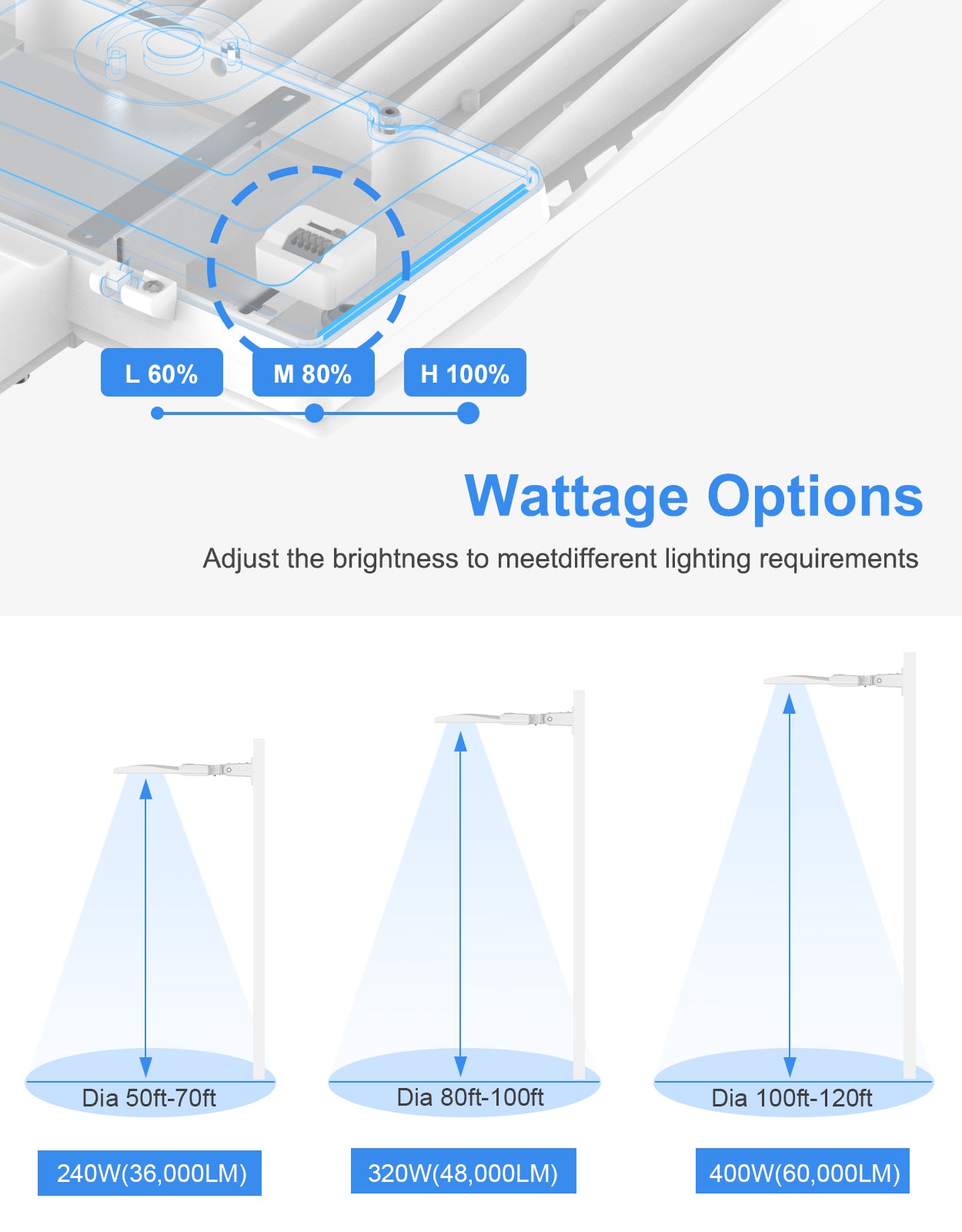Didn��t need full 400W. 320W lights up the whole area with no dark spots.