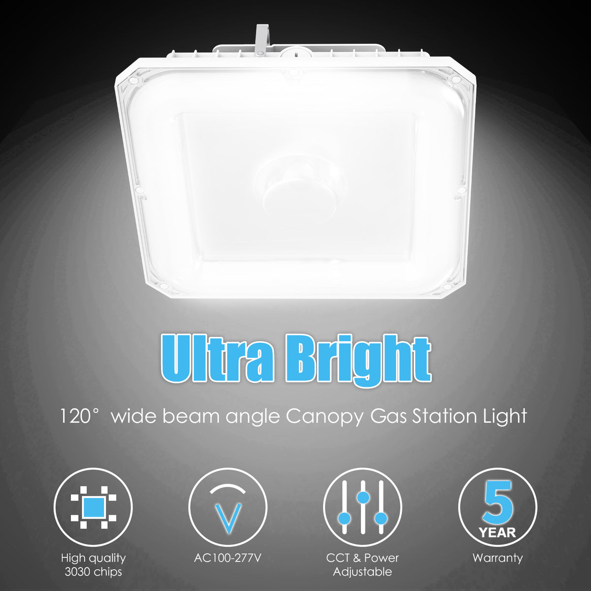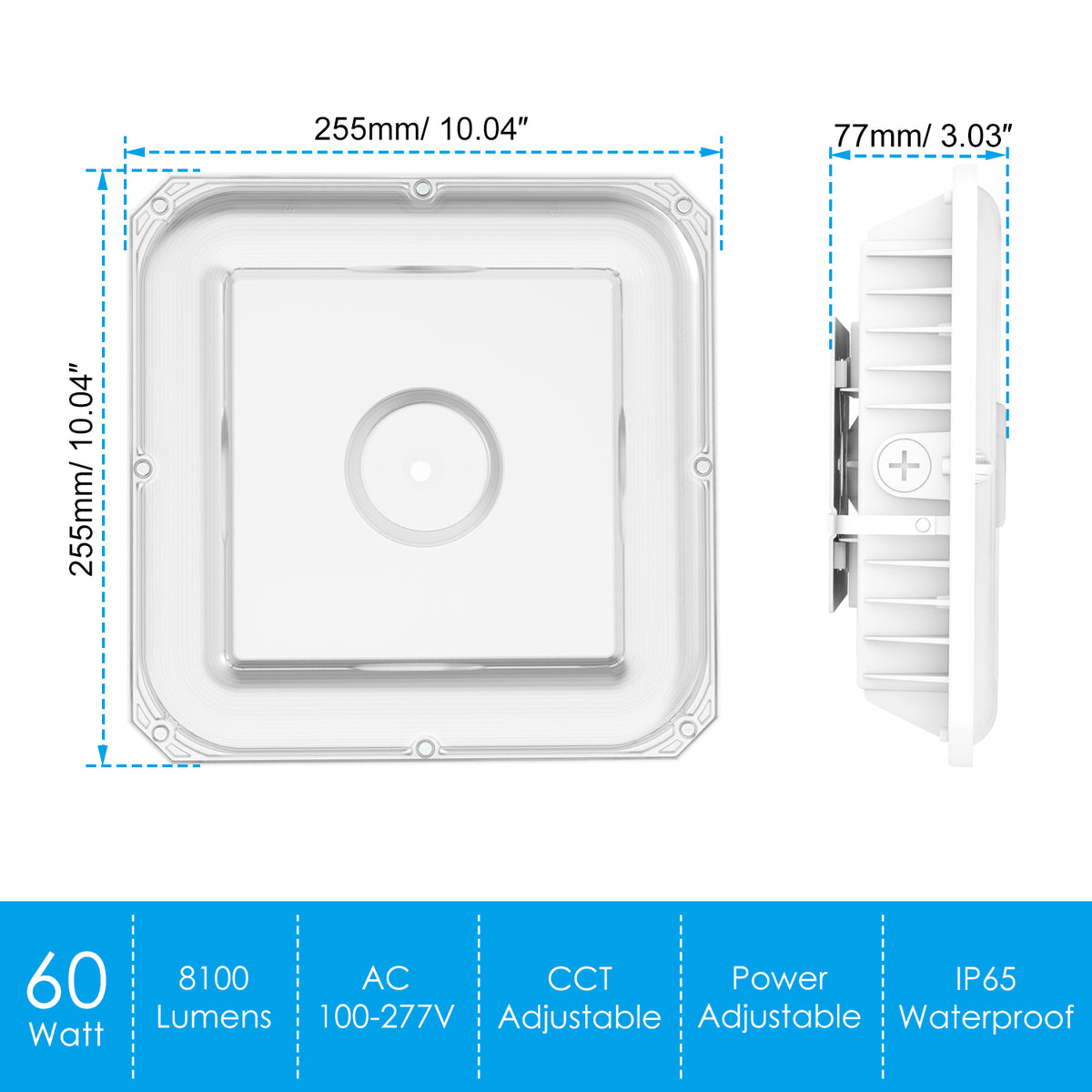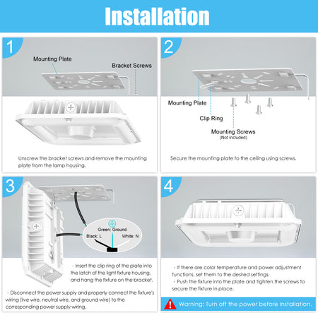 KUKUPPO 60W/48W/36W LED Canopy Light - ETL&DLC&CE,9000LM,4500K/5000K/5700K,100-277VAC,With Built-In Photocell
