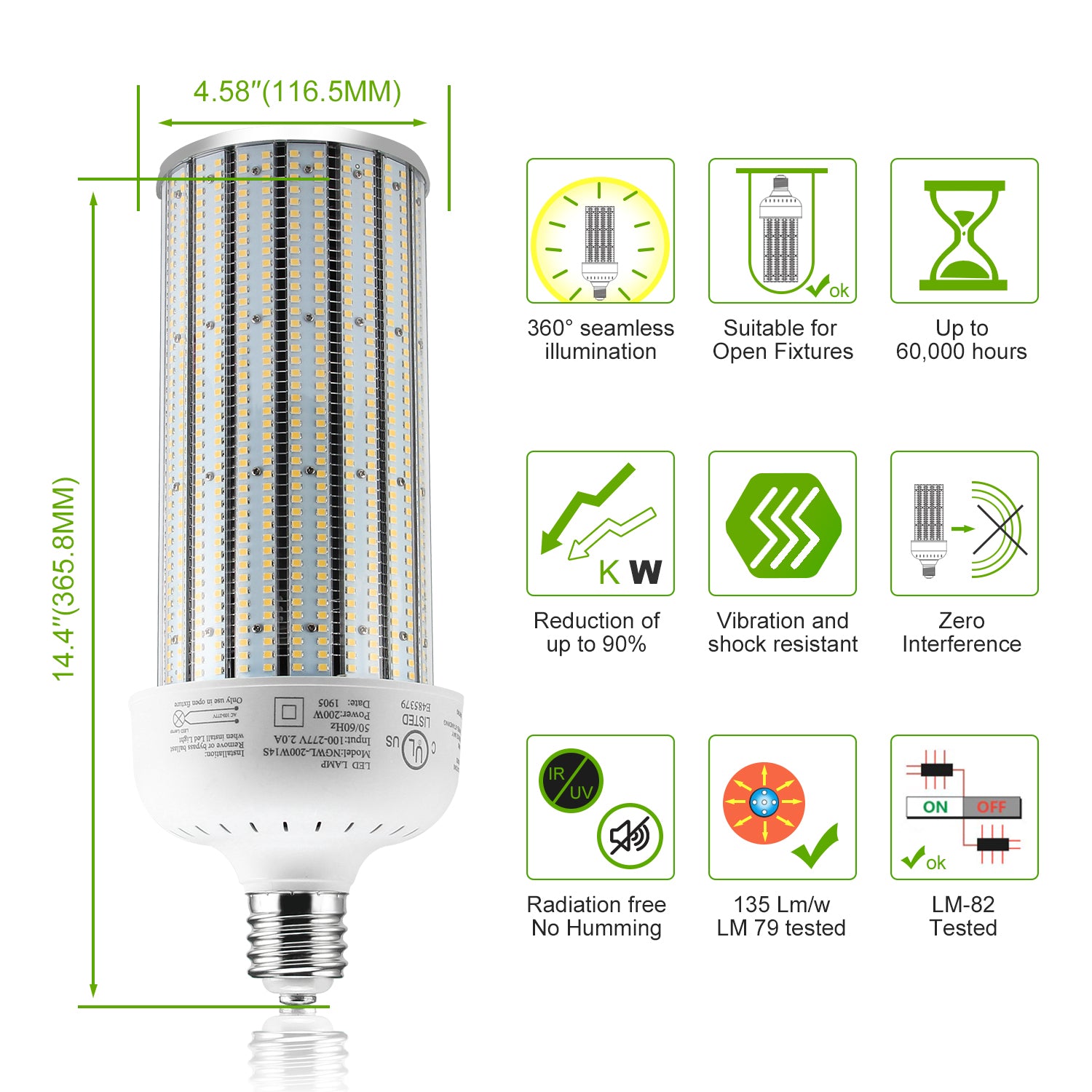 KUKUPPO 60W LED Corn Light - ETL&UL&CE,8400LM,5000K,100-277VAC,E39,PC Cover