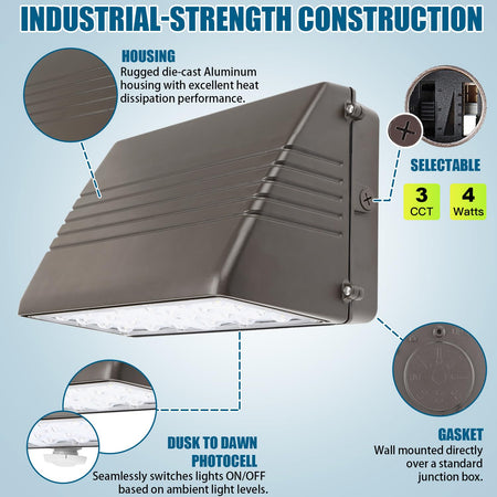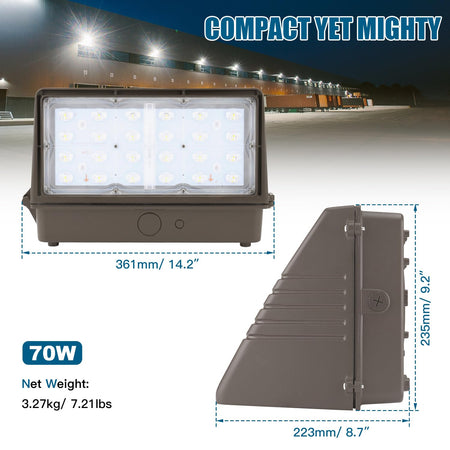 KUKUPPO 70W/56W/42W/28W LED Wall Pack Light -UL&DLC&CE,10500LM,3000K/4000K/5000K,120-277VAC,With Photocell