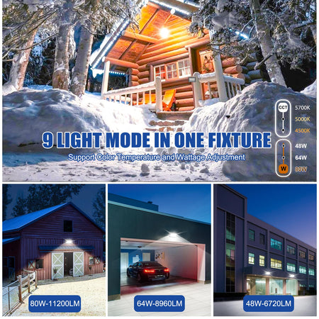 KUKUPPO 80W/60W/48W LED Wall Pack Light - ETL&DLC&UL,12000LM,4500K/5000K/5700K,100-277VAC,With Photocell,Glass Lens