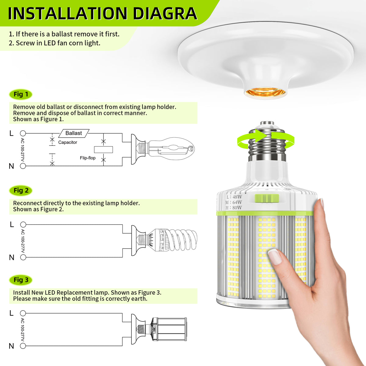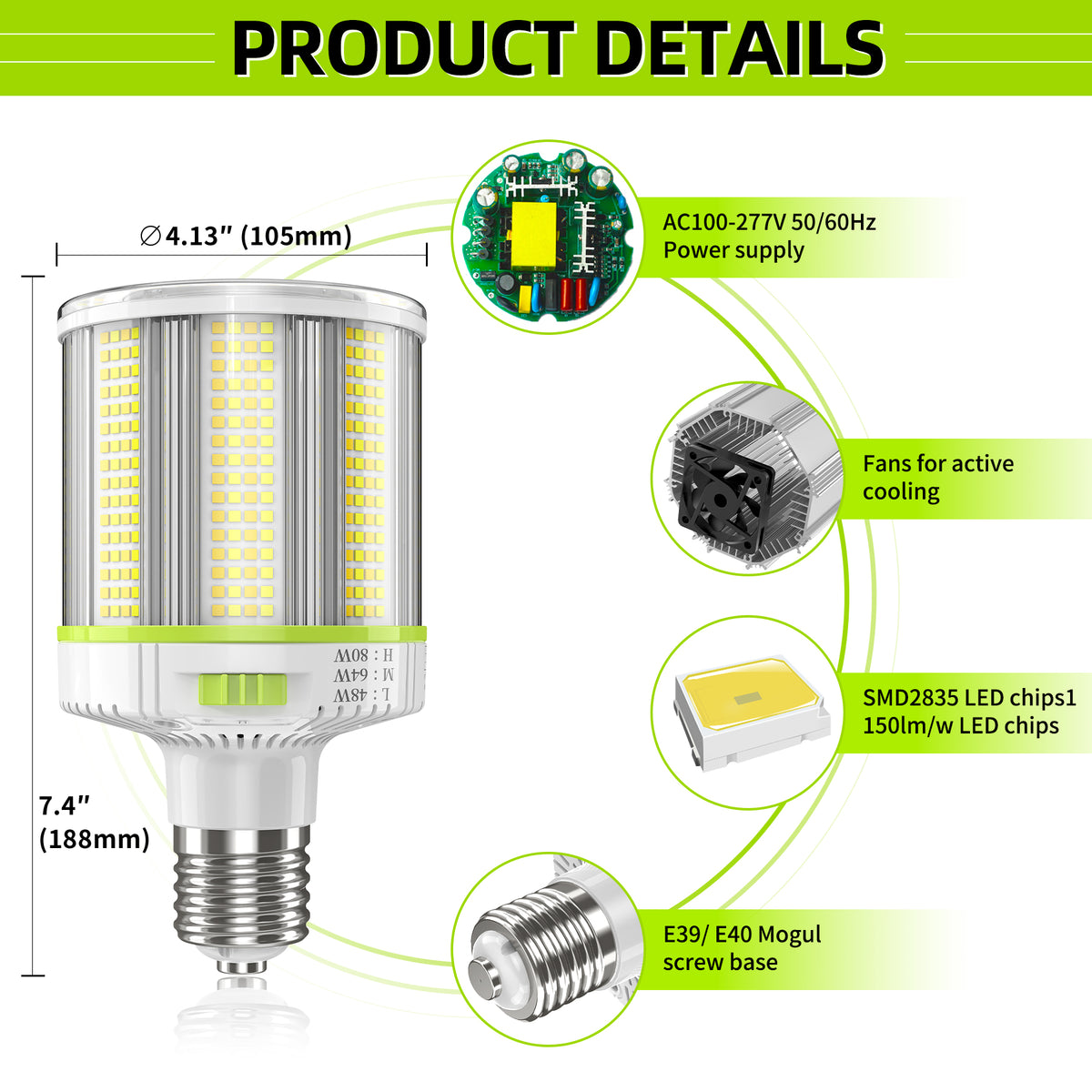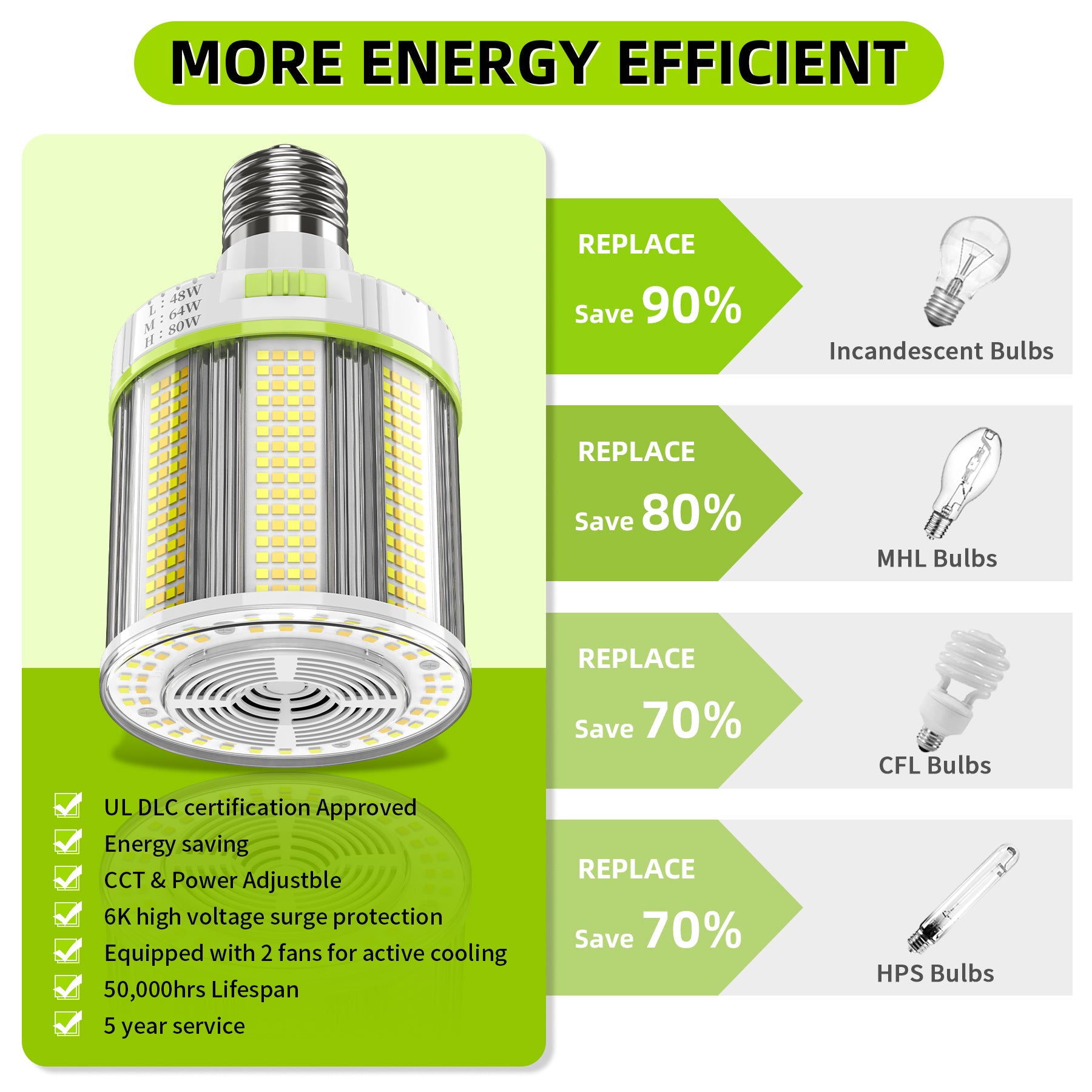 •Wattage: 80W/64W/48W