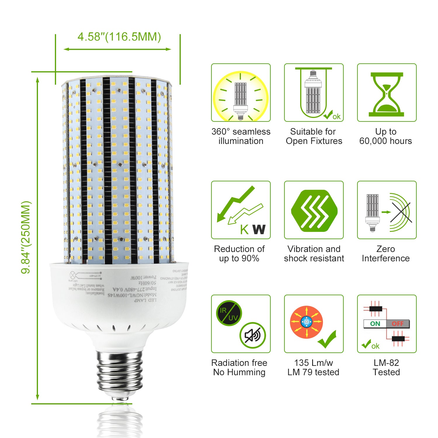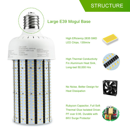 KUKUPPO 80W New LED Corn Light - ETL&UL&CE,11200LM,5000K,100-277VAC,E39,PC Cover